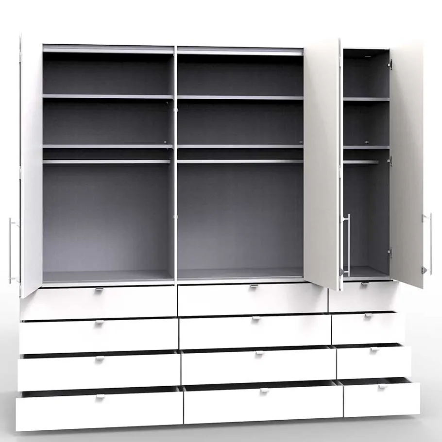 Um Ihnen eine unkomplizierte Handhabung zu ermöglichen, verfügt der „Bosays“ Kleiderschrank über insgesamt zwölf Schubkästen in zwei verschiedenen Größen. Dank des Metallauszugs, Soft Close-Funktion und Selbsteinzug gleiten die Schubladen sanft und geräuschlos. Hier finden auch kleinere Accessoires und persönliche Gegenstände einen organisierten Platz.