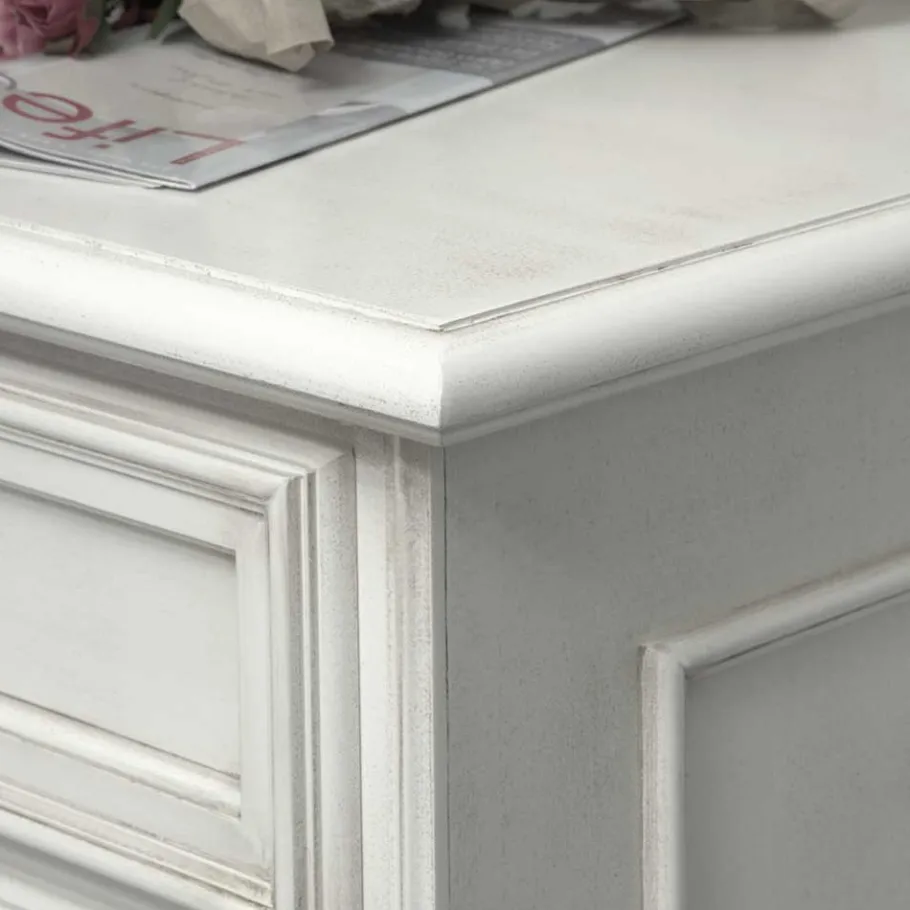 Die Kombi-Kommode „Vicina“ vereint stilvolle Ästhetik mit funktionaler Vielseitigkeit. Ihr antikweißer Look und die kunstvolle Verarbeitung verleihen jedem Wohnraum eine charmante, klassische Note.