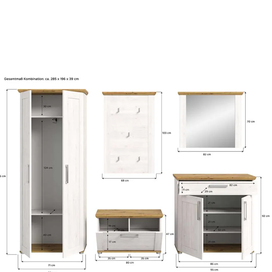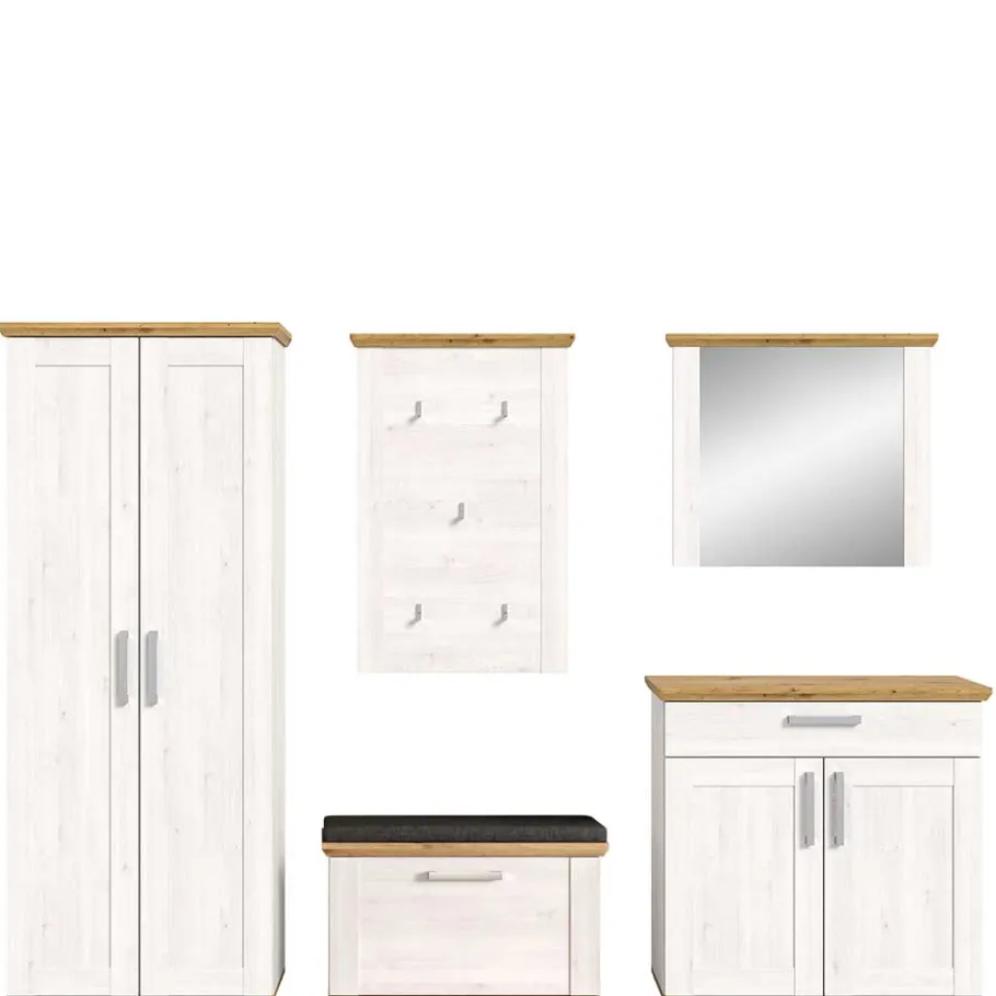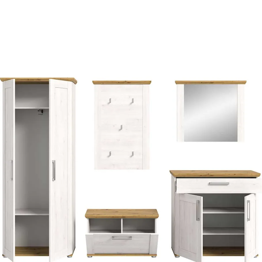 - Attraktive Garderobenmöbel in Weiß und Wildeichefarben