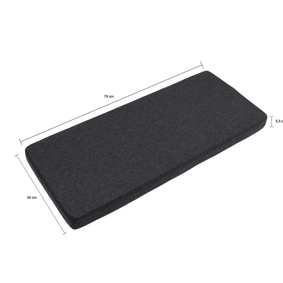 - Variante 002 mit gepolstertem Sitzkissen, grauer Webstoffbezug (100 % Polyester), Maße (BxHxT): 79×5,5×34 cm