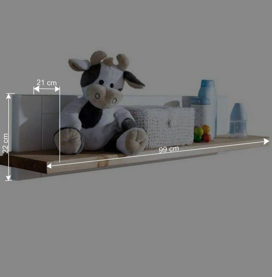 Mit einer Breite von 99 cm, einer Höhe von 22 cm und einer Tiefe von 21 cm, präsentiert sich das Wandboard „Envicron“ in einer schlanken rechteckigen Form, die sich mühelos in jeden Raum integrieren lässt. Obwohl es kompakt wirkt, bietet seine Ablage genug Platz für Spielzeug, Bücher oder andere Deko-Elemente.