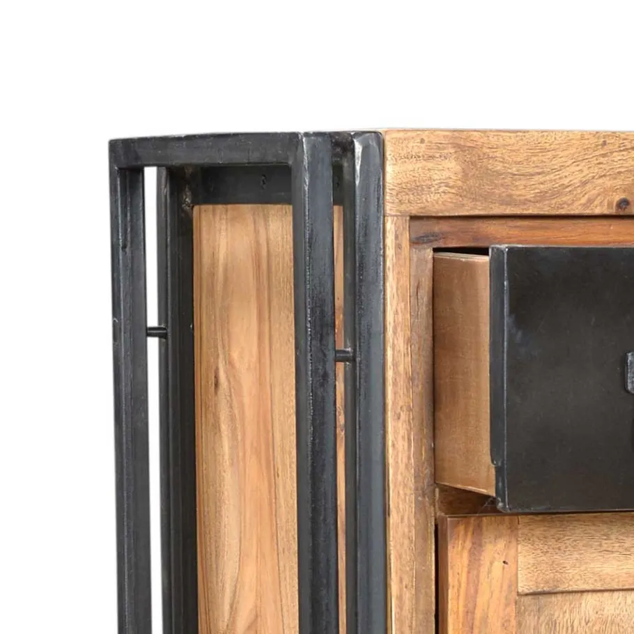 Das dominierende Akazienholz dieser Kommode steht nicht nur für eine beeindruckende Optik, sondern auch für Langlebigkeit und Robustheit. Das Holz der Akazie ist bekannt für seine außergewöhnliche Festigkeit und Widerstandsfähigkeit gegen äußere Einflüsse. Gekoppelt mit dem stabilen Metall, entsteht ein Möbelstück, das über Jahre hinweg sowohl optisch als auch funktional überzeugt.
