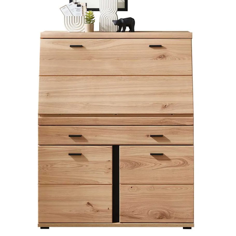 - Dieser moderne Sekretär in Eschefarben (Front) und Wildeichefarben (Korpus) sowie Schwarz ist ein echter Hingucker