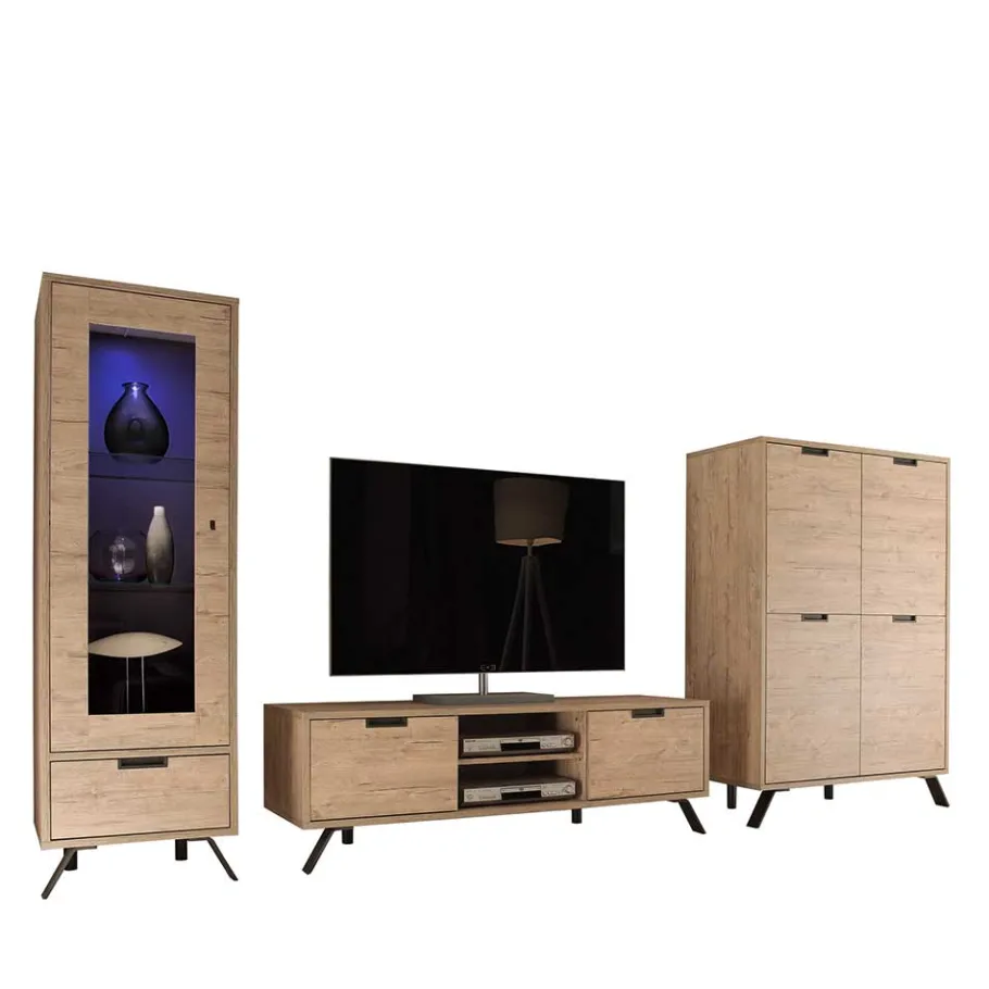 - Bestehend aus Vitrine, Highboard und TV-Element