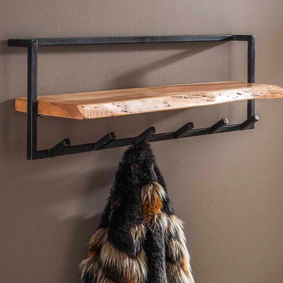 - Rustikale Hängegarderobe in Akaziefarben und Anthrazit