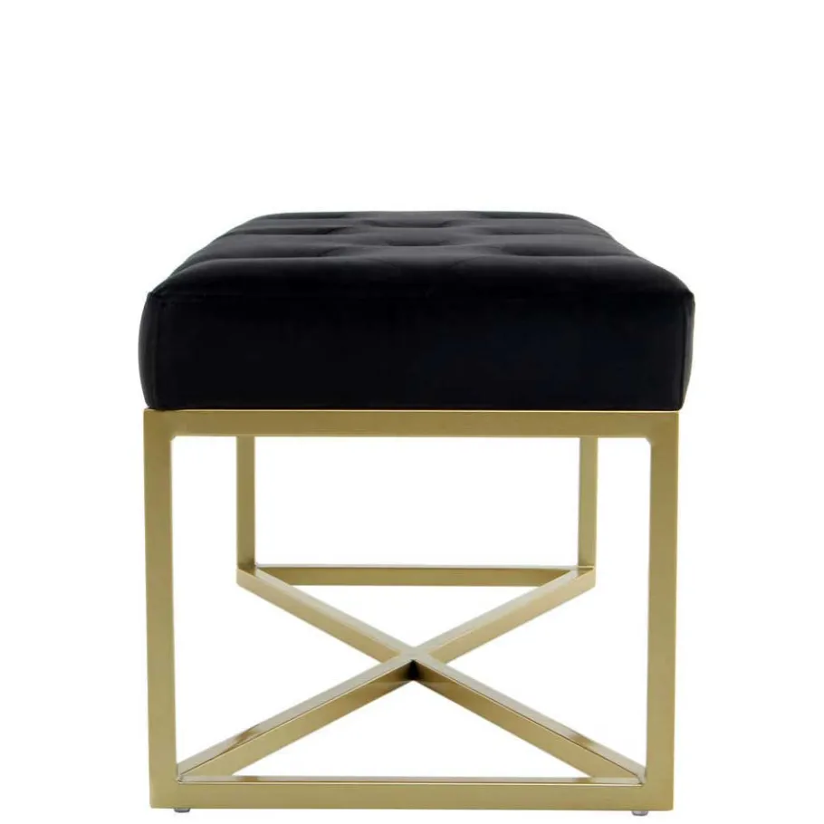 Mit der Samtbank „Carantec“ setzen Sie ein stilvolles Statement in Ihrem Wohnraum. Das Zusammenspiel aus tiefschwarzem Samt und einem glänzend goldfarbenen Metallgestell verleiht diesem Möbelstück einen Hauch von Exklusivität. Ob als Sitzgelegenheit im Schlafzimmer, als stilvolle Ergänzung im Eingangsbereich oder als Akzent im Wohnraum – „Carantec“ überzeugt durch ihre Vielseitigkeit und ansprechende Optik.