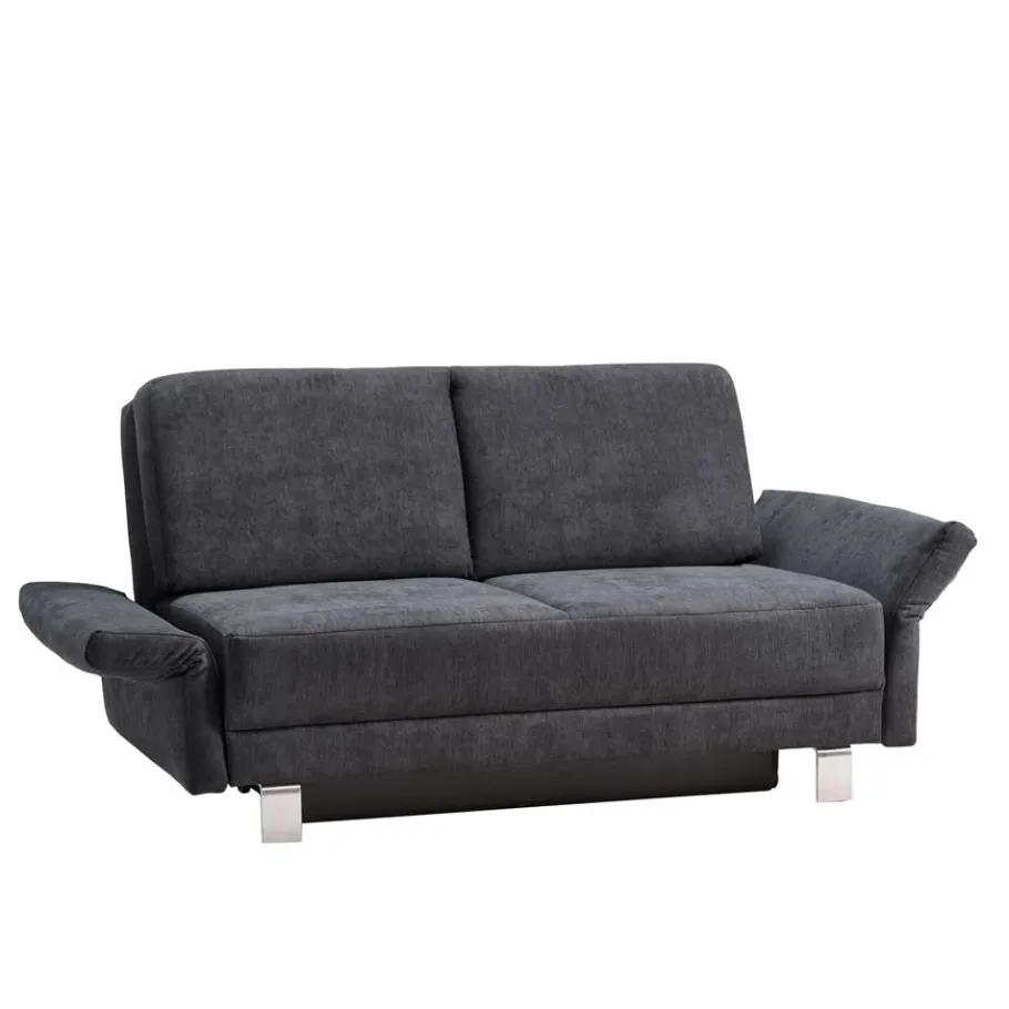 Entdecken Sie die Vielseitigkeit und den Komfort der Schlafcouch „Casmas“ in Graublau und Alufarben.