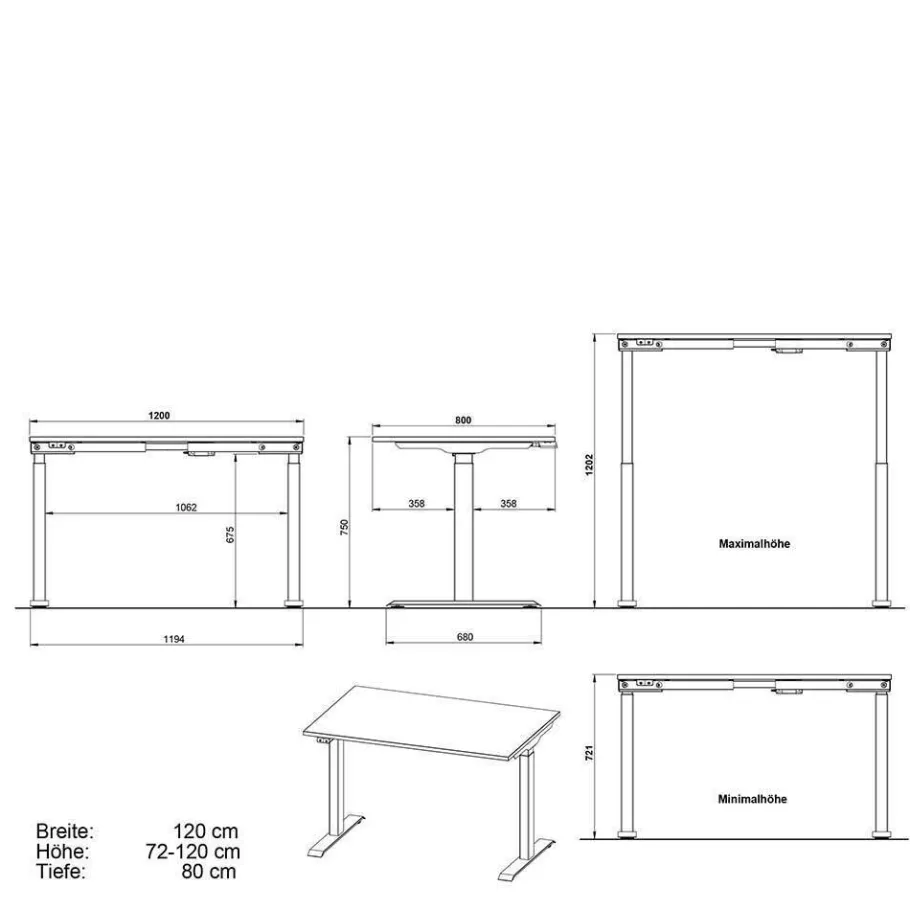 - Per Knopfdruck elektrisch höhenverstellbar von 72-120 cm