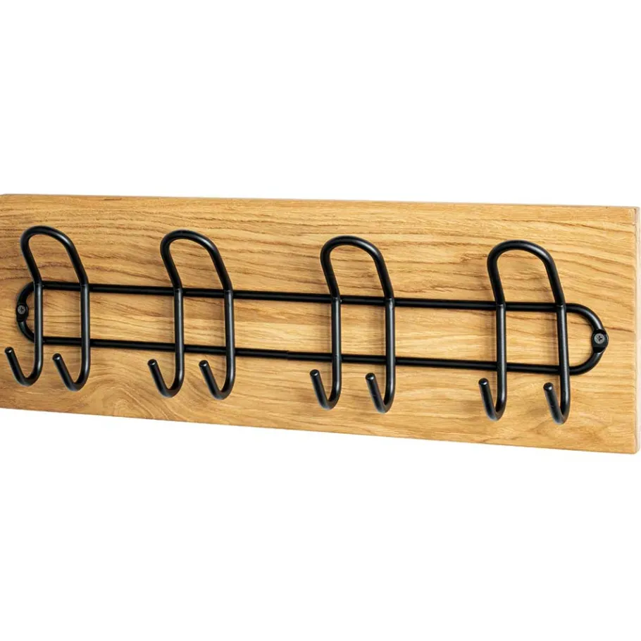 - Ansprechende Garderobenleiste in Eichefarben und Schwarz