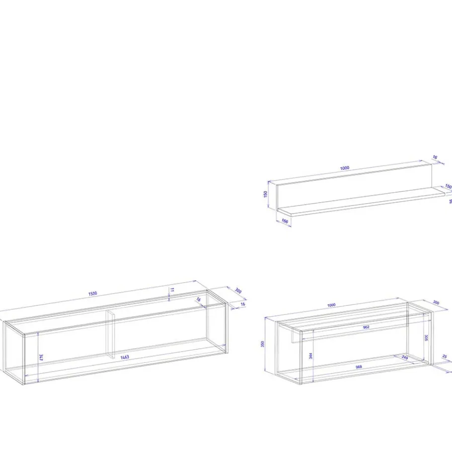 Entdecken Sie die Wohnwand „Nonessia“, eine perfekte Symbiose aus modernem Design und praktischer Funktionalität. Dieses Set, bestehend aus einem Hängeschrank, einem Hängesekretär und einem Wandboard, transformiert jeden Raum in einen stilvollen und gleichzeitig funktionellen Bereich.