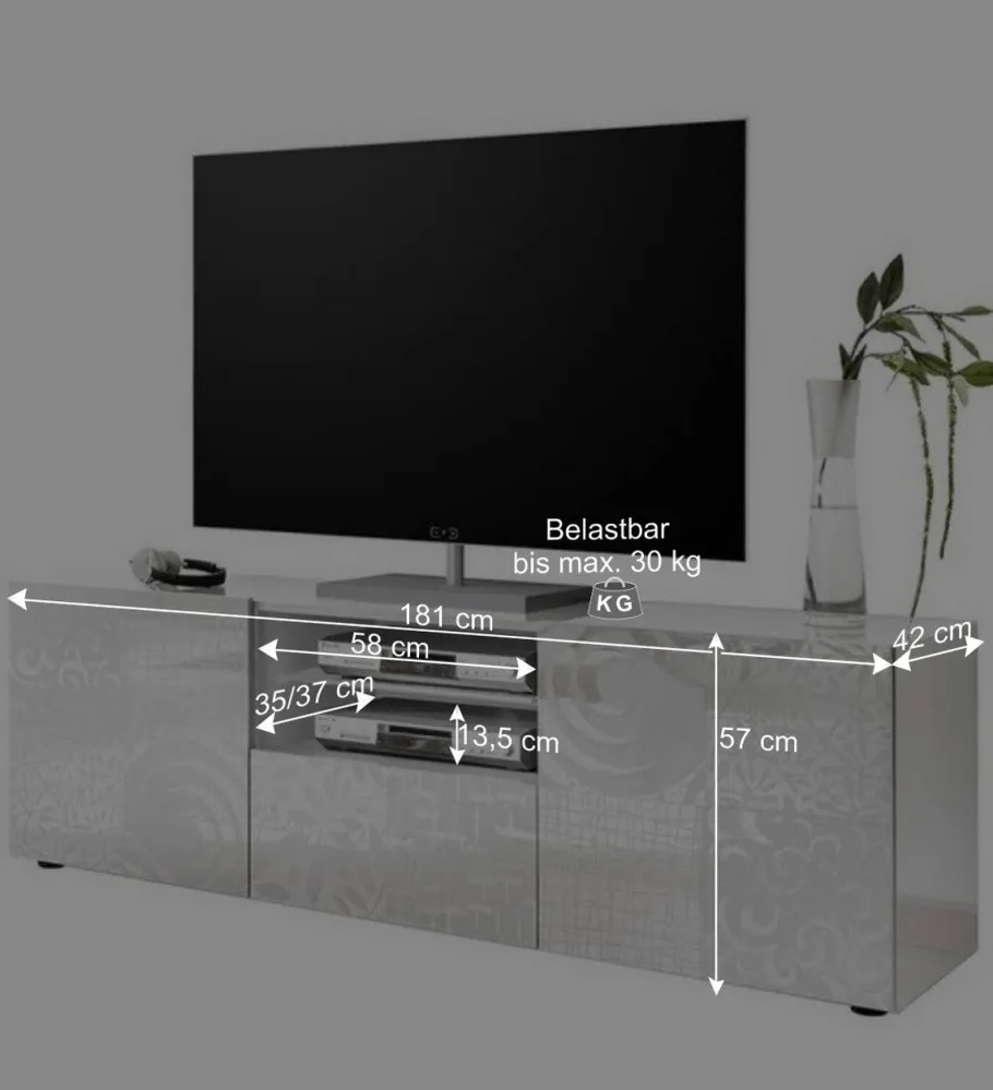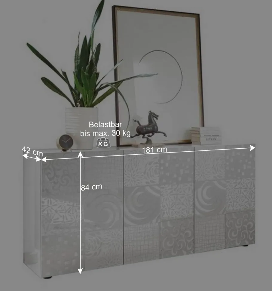 - Oberflächen lackiert in Weiß Hochglanz, Fronten mit aufwändigem Siebdruck gestaltet
