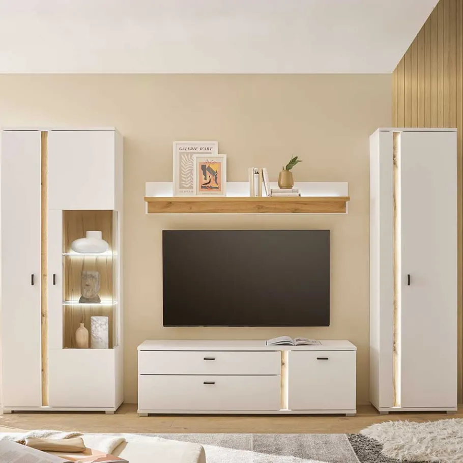 - Elegante Wohnwand in Weiß und Wildeichefarben