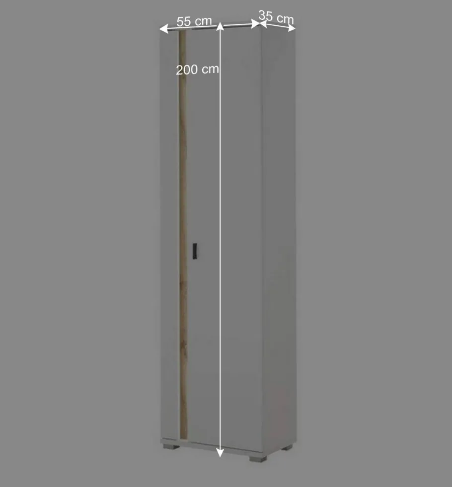 Mehr Stauraum für Ihr Zuhause. Mit einer beeindruckenden Höhe von 200 cm und einer Breite von 55 cm bietet dieser Schrank vielseitige Aufbewahrungsmöglichkeiten. Die flexible Türmontage, die wahlweise rechts oder links erfolgen kann, macht ihn besonders anpassungsfähig. Innen sorgen drei verstellbare Einlegeböden und ein Konstruktionsboden dafür, dass Sie den Platz optimal nutzen können. Gedämpfte Metallbeschläge ermöglichen ein sanftes und nahezu geräuschloses Schließen der Tür – eine Wohltat für den Alltag.