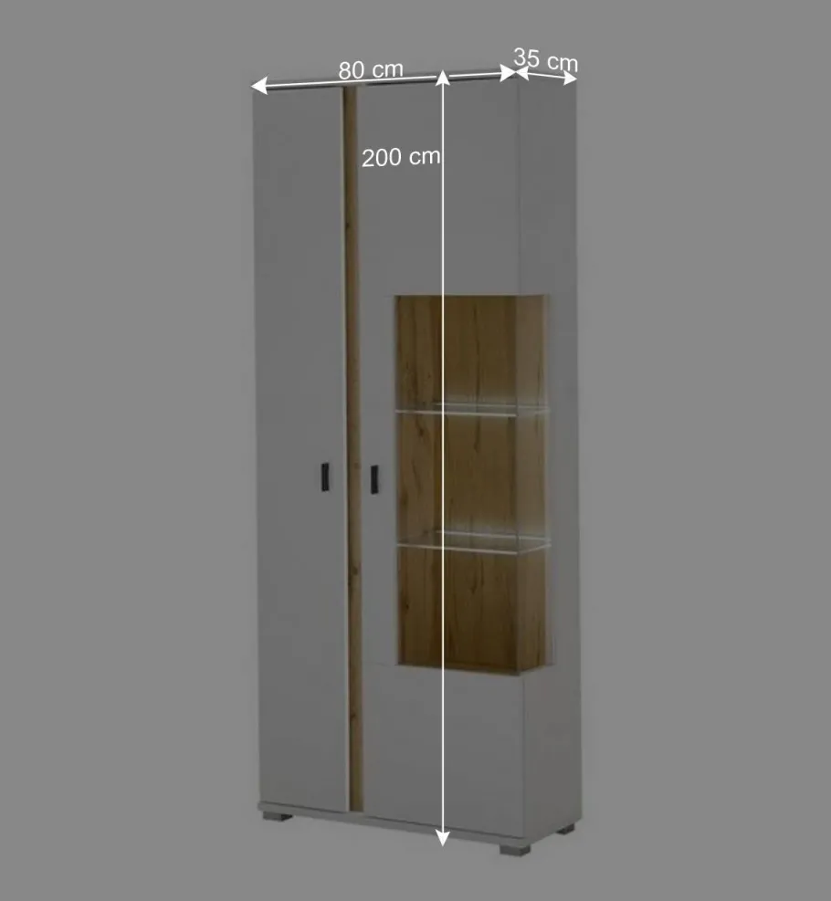 Sammelstücke und Lieblingsdekorationen verdienen einen besonderen Platz. Die Vitrine von Racelyn kombiniert Holz und Glaselemente auf einzigartige Weise. Mit einer Breite von 80 cm und einer Höhe von 200 cm bietet sie beeindruckend viel Raum, um Ihre Schätze stilvoll zu präsentieren. Die integrierte LED-Beleuchtung setzt Ihre Lieblingsstücke gekonnt in Szene und schafft eine stimmungsvolle Atmosphäre. Fünf Einlegeböden auf der linken Seite und mehrere Glas- sowie Konstruktionsböden auf der rechten Seite sorgen für ausreichend Platz und Ordnung.