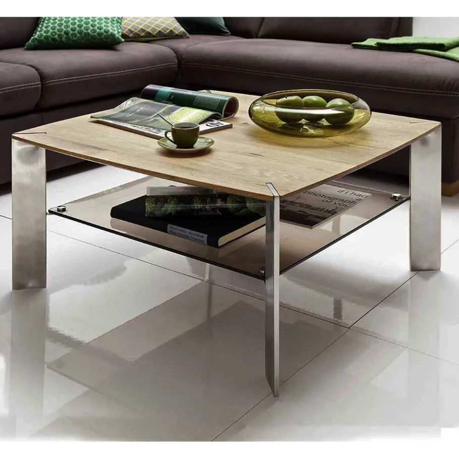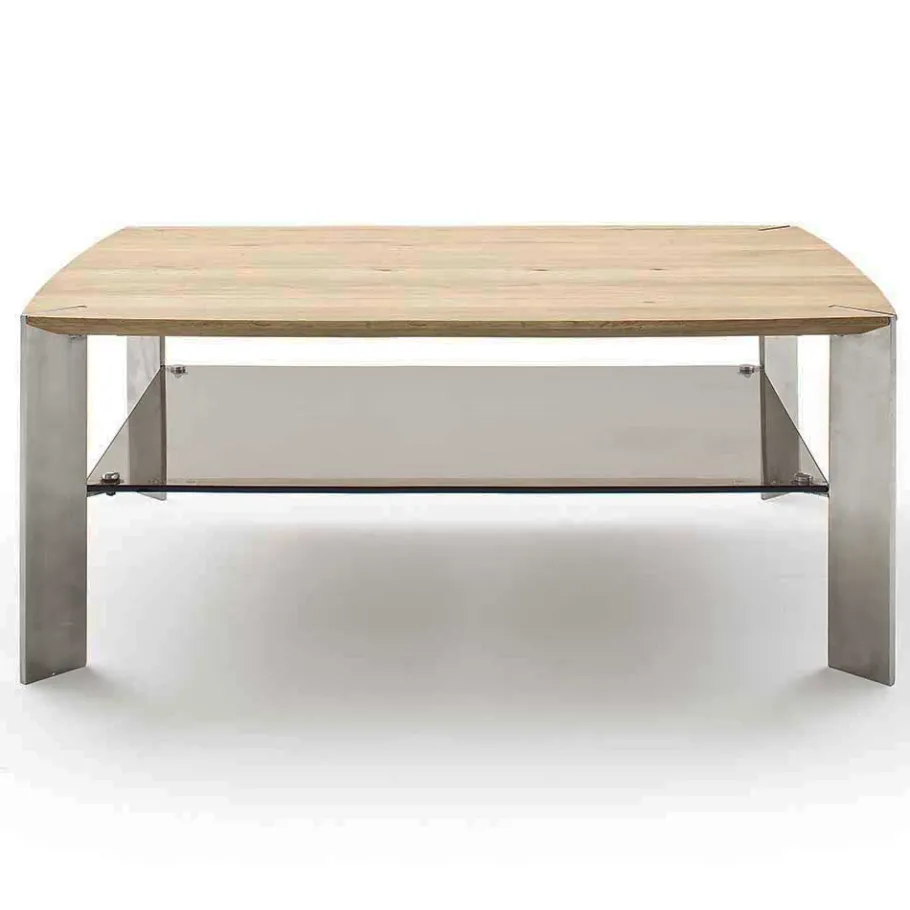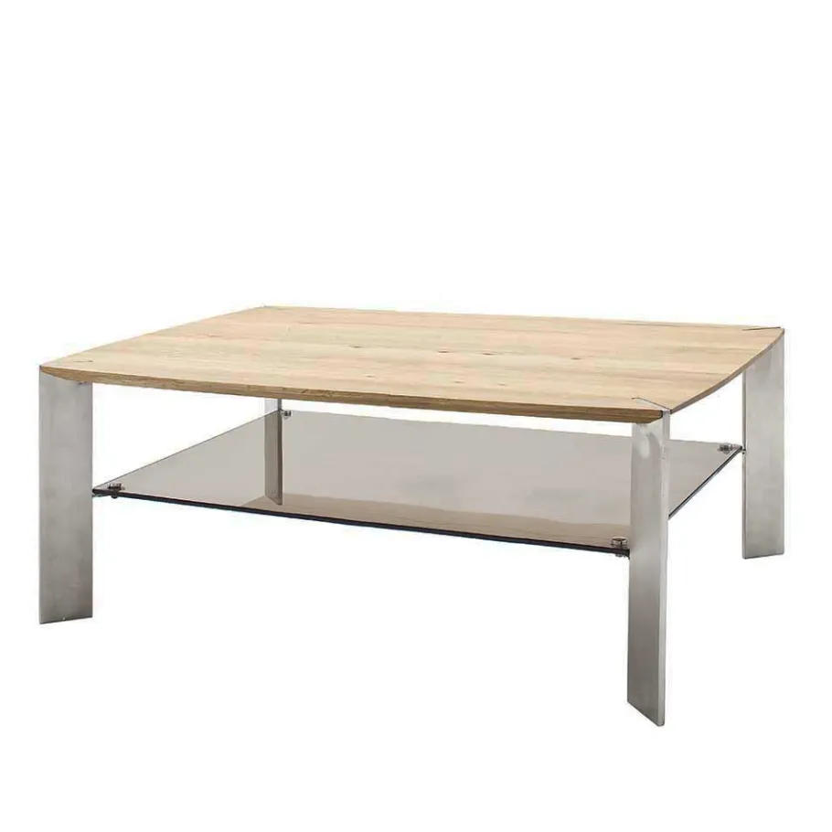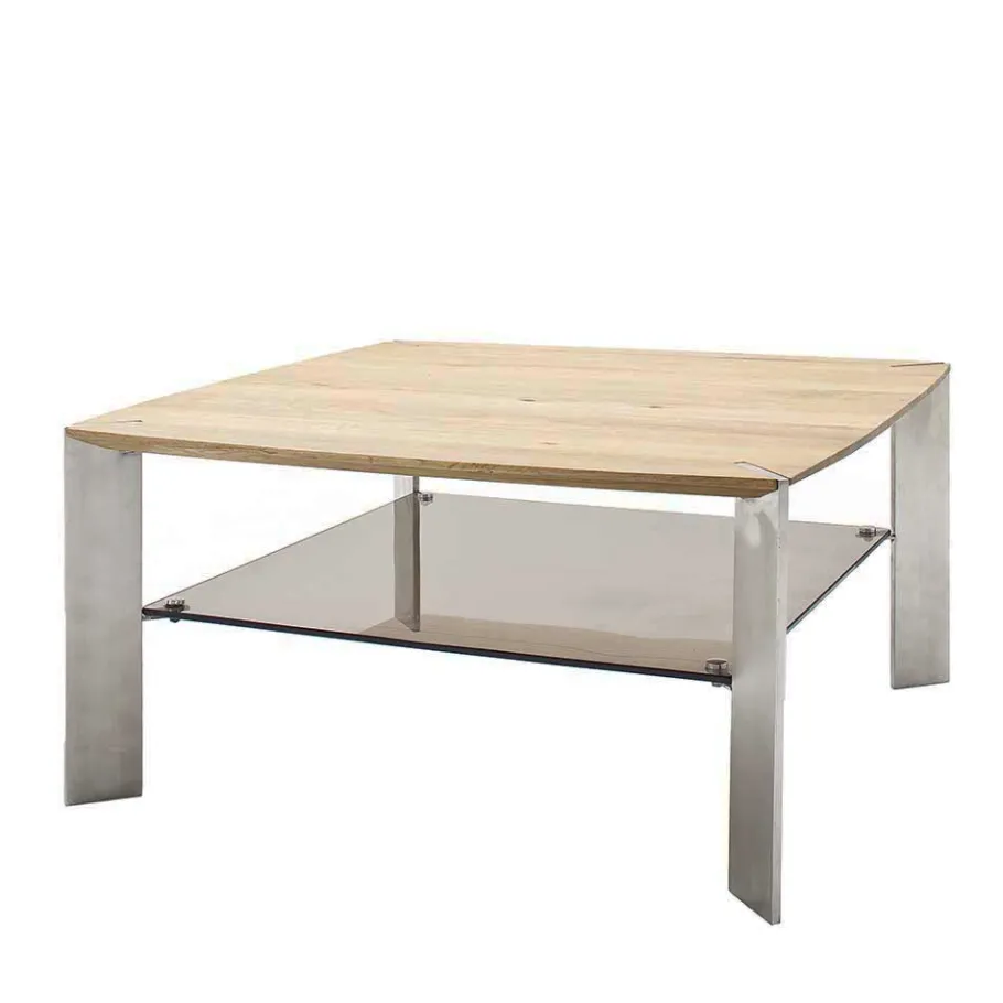 - Eleganter Couchtisch in Asteiche-, Bronze- und Edelstahlfarben