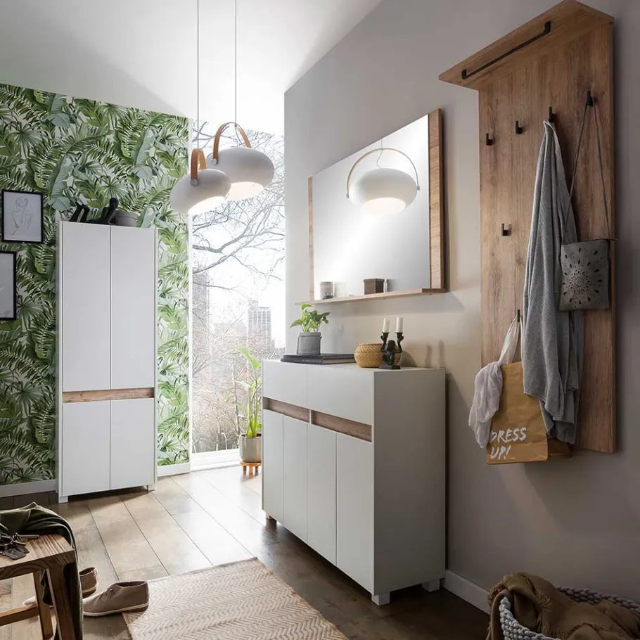 - Geradliniges Garderoben Set in Weiß und Wildeichefarben