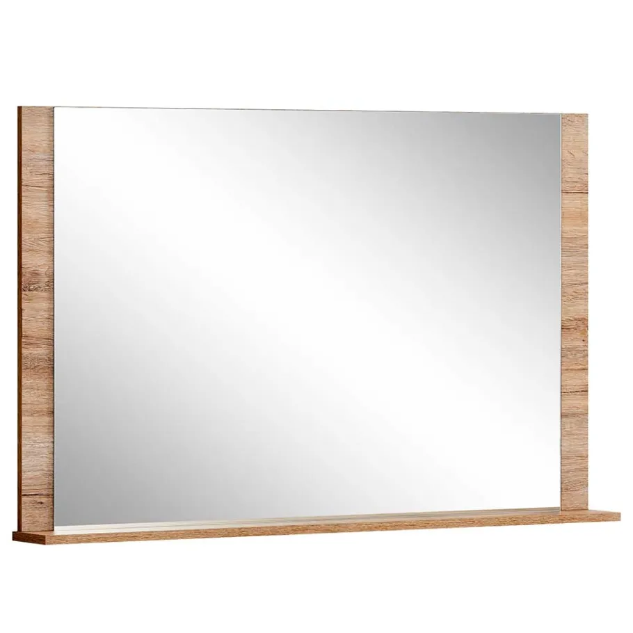 Der 111,3×71,1×12,4 cm große Spiegel ist nicht nur optisch ein Highlight, sondern auch praktisch: Die großzügige Spiegelfläche (99,4×69,4 cm) wird ergänzt durch eine schmale Ablage am unteren Rand (112,2×10 cm) – perfekt für Schlüssel, Sonnenbrille oder kleine Dekorationen. Der Rahmen in Wildeiche-Holzoptik fügt sich harmonisch in das Gesamtbild ein.