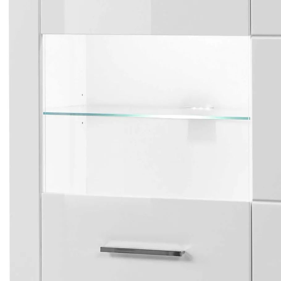 - Helle Vitrine in Weiß Hochglanz