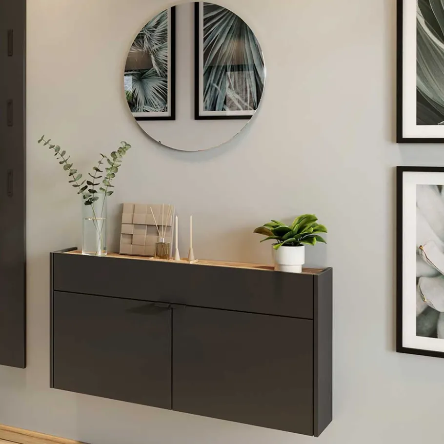 - Klasse Garderobenmöbel in Dunkelgrau und Wildeichefarben
