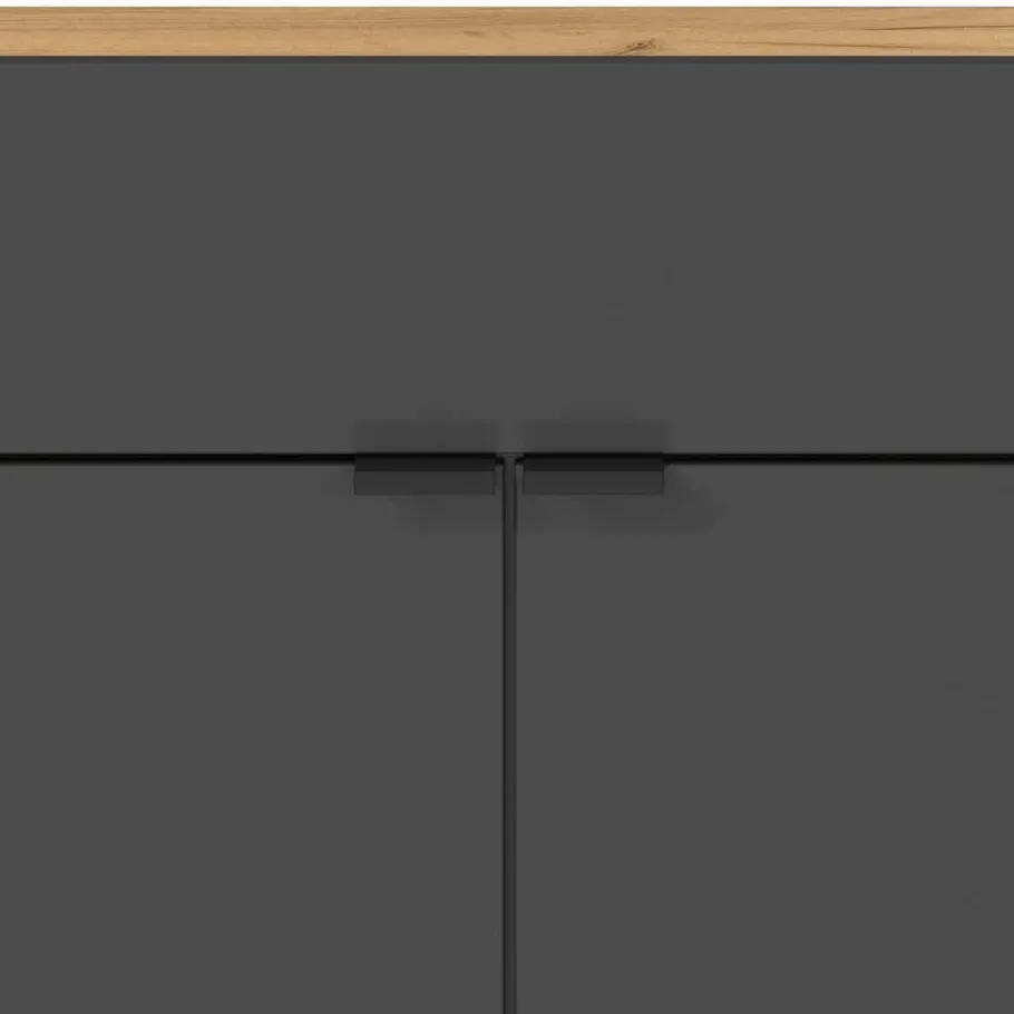 Ein stilvoller Eingangsbereich ist die Visitenkarte eines Zuhauses. „Sidgarus“ überzeugt mit klaren Linien, harmonischen Farbkontrasten und clever durchdachter Funktionalität. Dunkelgraue Fronten setzen einen edlen Akzent, während die Wildeichefarben Wärme und Natürlichkeit vermitteln. Durch die Kombination von Spanplatte und hochwertigem Spiegelglas entsteht ein Möbelstück, das nicht nur optisch beeindruckt, sondern auch langlebig und pflegeleicht ist.