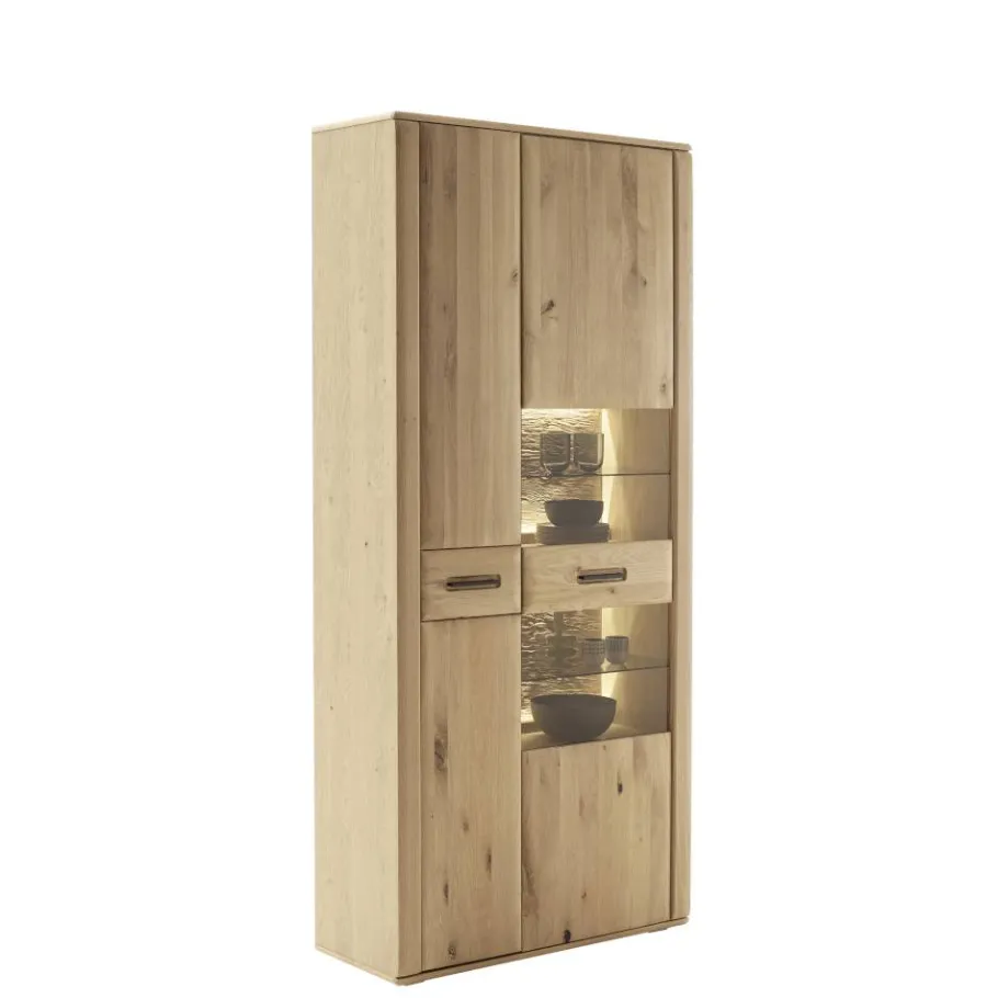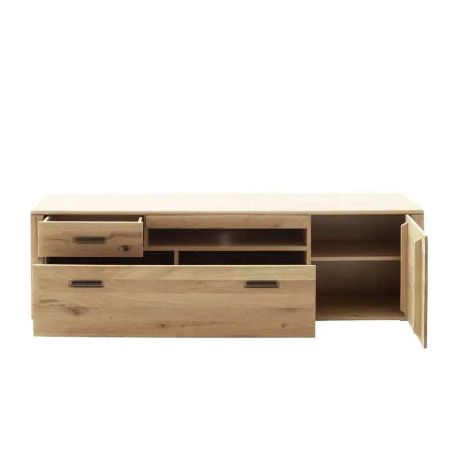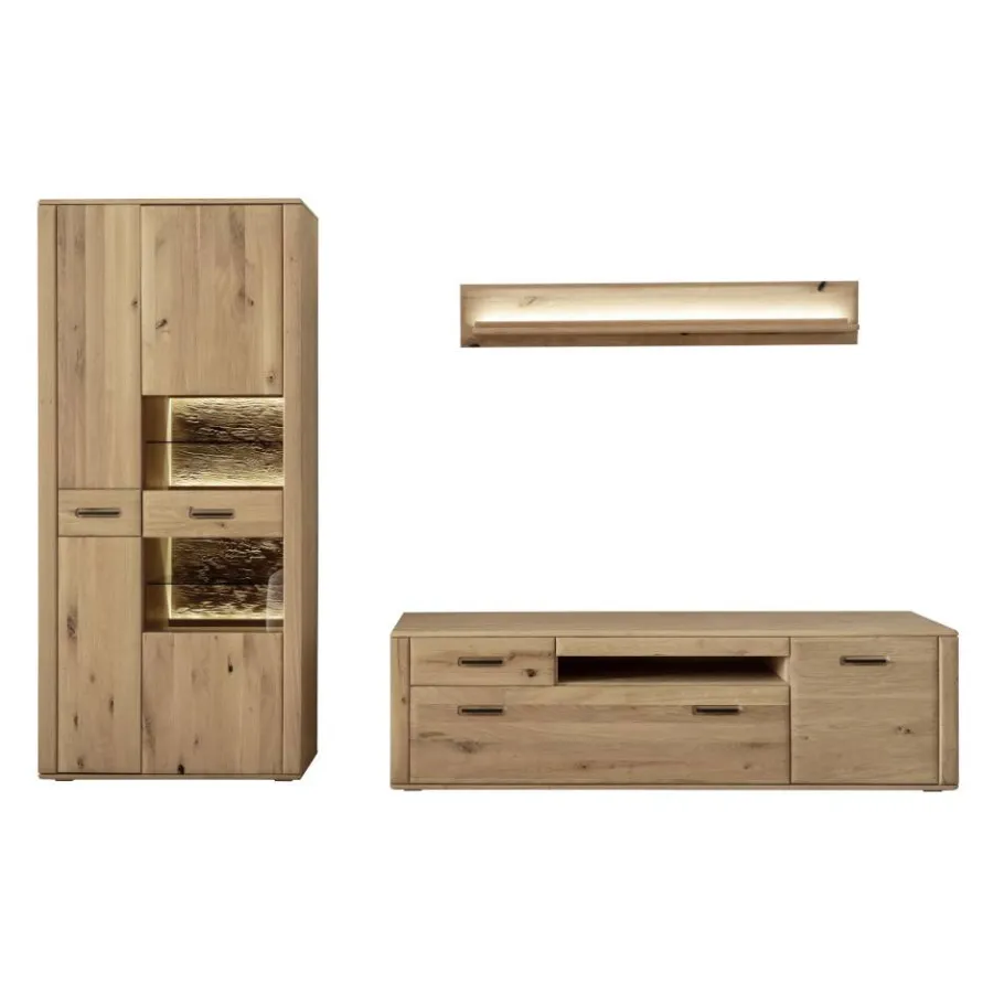 Das dreiteilige Wohnzimmer-Set „Jevedaz“ ist die ideale Lösung für alle, die natürliche Materialien, hohe Funktionalität und eine klare, moderne Formensprache schätzen. Gefertigt aus hell geölter Ast- und Balkeneiche in Kombination mit furnierter Spanplatte, vereint dieses Möbelprogramm handwerkliche Qualität mit zeitgemäßem Wohnkomfort. Die markanten Massivholz-Fronten mit durchgehender Lamelle und die stilvoll abgestimmten Metall-Details verleihen jedem Raum eine natürliche, wertige Atmosphäre.