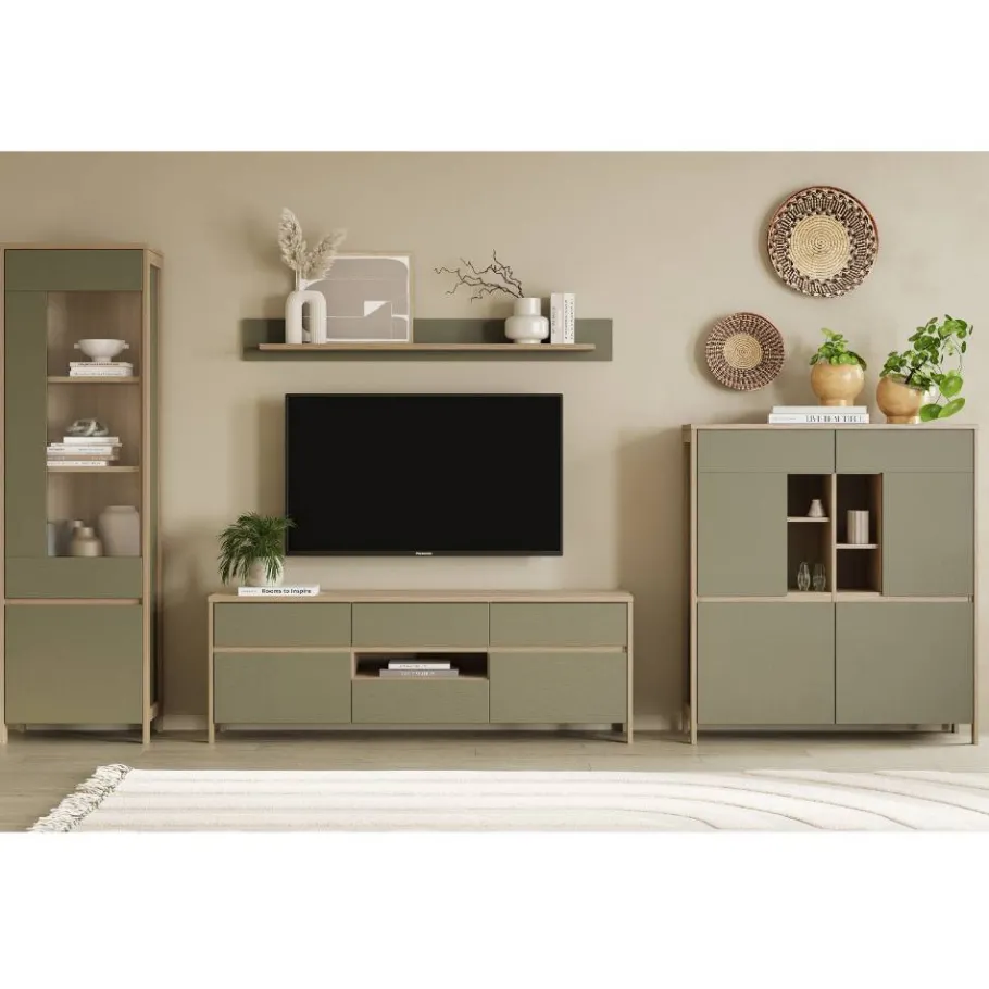 - Super Wohnwand in Eukalyptus- und Eichefarben
