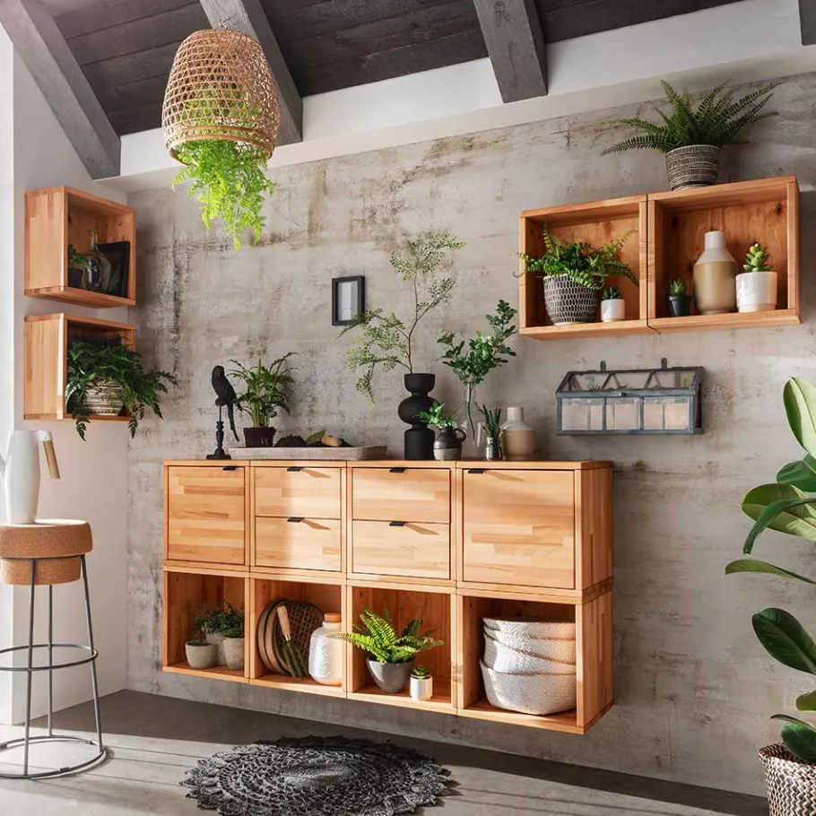 Bringen Sie zeitloses Design, natürliche Eleganz und durchdachte Funktionalität in Ihr Leben – mit der Regalwürfel-Wohnwand „Gabela“ von Wohnen.de. Ihr Zuhause verdient nichts Geringeres.