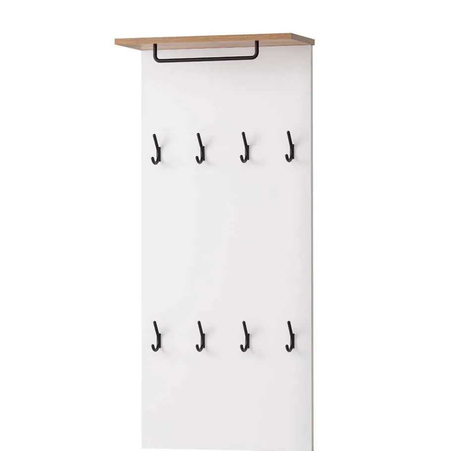 - Dezentes Garderobenpaneel in Weiß und Holzoptik Eiche