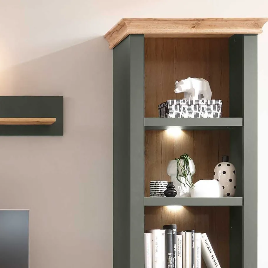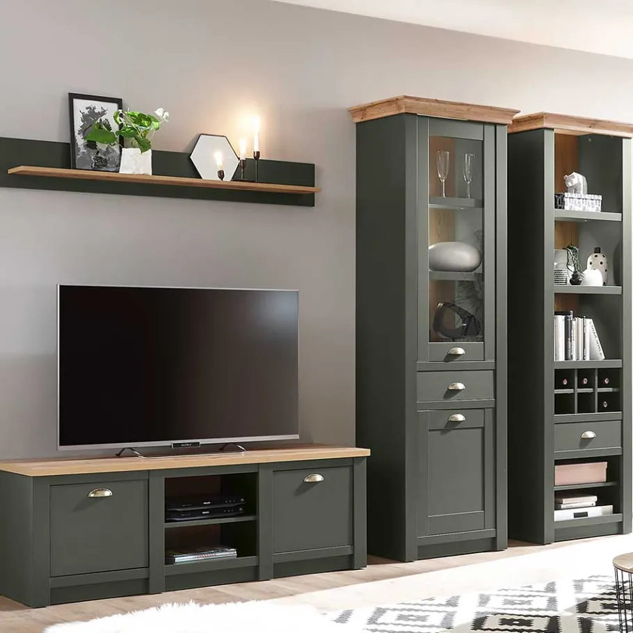 - Fabelhafte Wohnwand in Graugrün und Wildeichefarben