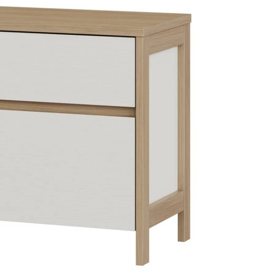 Gefertigt aus robustem Holzwerkstoff bietet das Set Stabilität und dauerhafte Qualität. Die melaminbeschichteten Oberflächen in Weiß und Eiche-Natur-Optik kombinieren attraktive Optik mit praktischen Vorteilen: Sie sind besonders kratzfest, unempfindlich gegenüber Feuchtigkeit und leicht zu reinigen – perfekt für den täglichen Einsatz im Wohnzimmer. So behalten Ihre Möbel über Jahre hinweg ihren schönen Glanz.