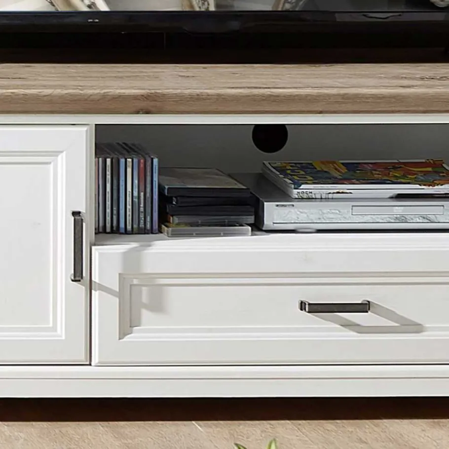 Unsere Wohnkombination „Sinolita“ vereint die zeitlose Eleganz des skandinavischen Landhausstils mit modernem Design und höchster Qualität. Diese Wohnkombination besteht aus drei Möbelstücken: einem TV-Lowboard, einer Vitrine und einem Wandboard. Lassen Sie uns Ihnen diese wundervolle Kombination im Detail vorstellen!