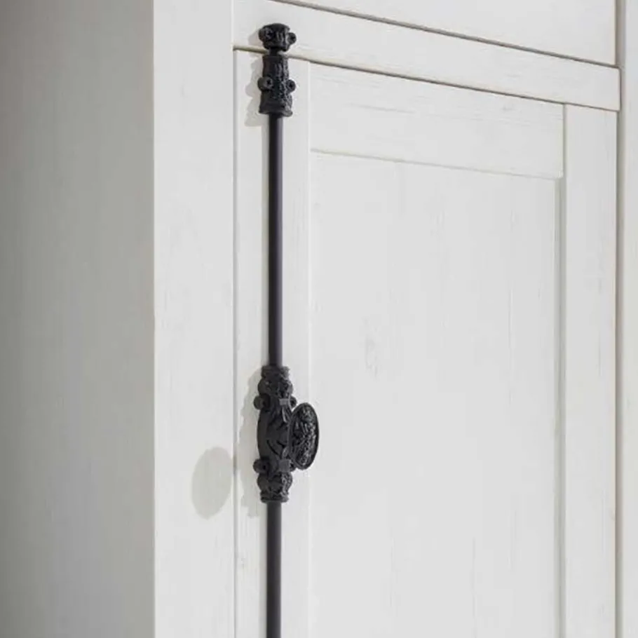 - Holztüren mit rustikalen Stangengriffen aus schwarzem Metall