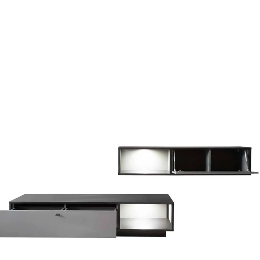 - Geradlinige Wohnwand in Grau und Anthrazit