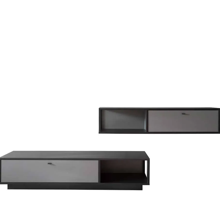 Tauchen Sie ein in das elegante Universum der Wohnwand „Ridona“, einem harmonischen Zusammenspiel aus TV-Lowboard und Hängeschrank, das Ihr Wohnzimmer in eine Oase der Modernität verwandelt. Gefertigt aus hochwertiger Spanplatte und MDF – einem Material, bekannt für seine Dichte und Haltbarkeit – bietet „Ridona“ nicht nur eine ästhetisch ansprechende, sondern auch eine langlebige Lösung für Ihr Zuhause. Die Kombination aus Grau und Anthrazit, veredelt durch eine Melaminbeschichtung und folierte Korpusrahmen, verspricht eine Oberfläche, die nicht nur gut aussieht, sondern auch Kratzern und Hitze standhält. Ein besonderer Eyecatcher, der jedes Wohnzimmer bereichert.