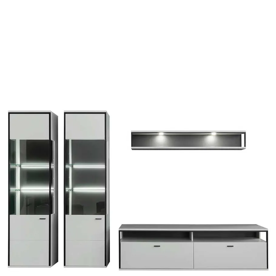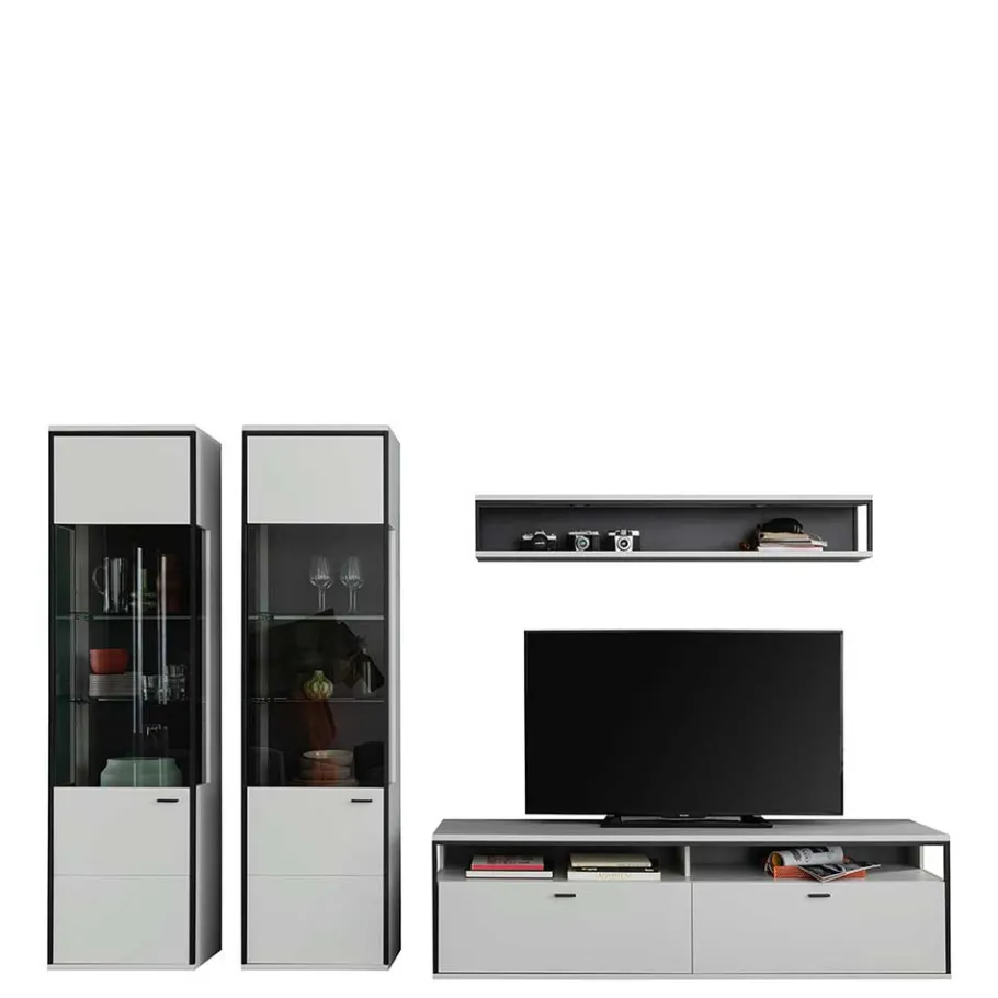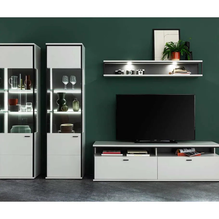 - Edle Wohnwand in Weiß und Schwarzgrau