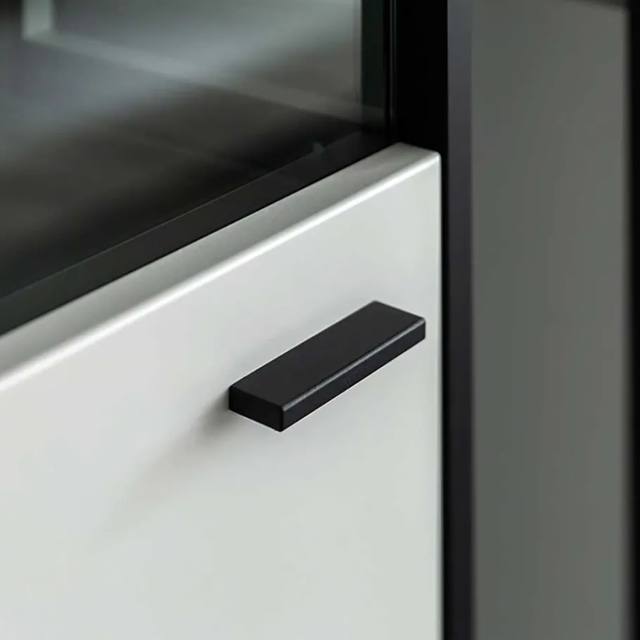 Gefertigt aus Holzwerkstoff und Aluminium, bietet die Loazin Serie nicht nur ein modernes Aussehen, sondern auch eine hervorragende Qualität. Die melaminbeschichteten Oberflächen sind strapazierfähig und leicht zu reinigen, während die tiefgezogen folierten Fronten mit Aluminiumprofilen und Fräsrillen einzigartige Akzente setzen.