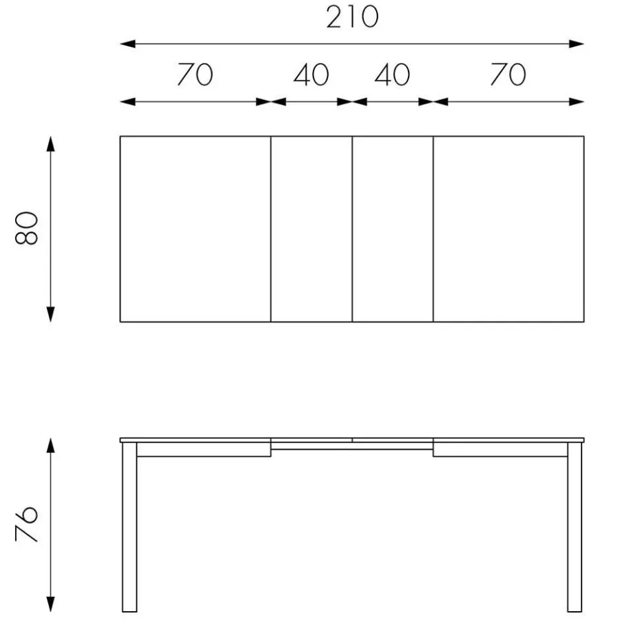 - Verlängerbar um je 40 cm, von 130 bis auf 210 cm