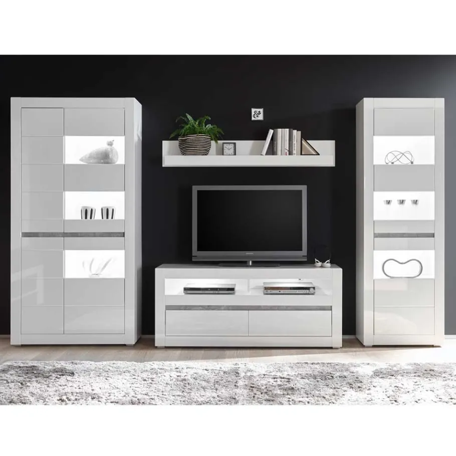 - Ausgezeichnete Wohnwand in Weiß Hochglanz