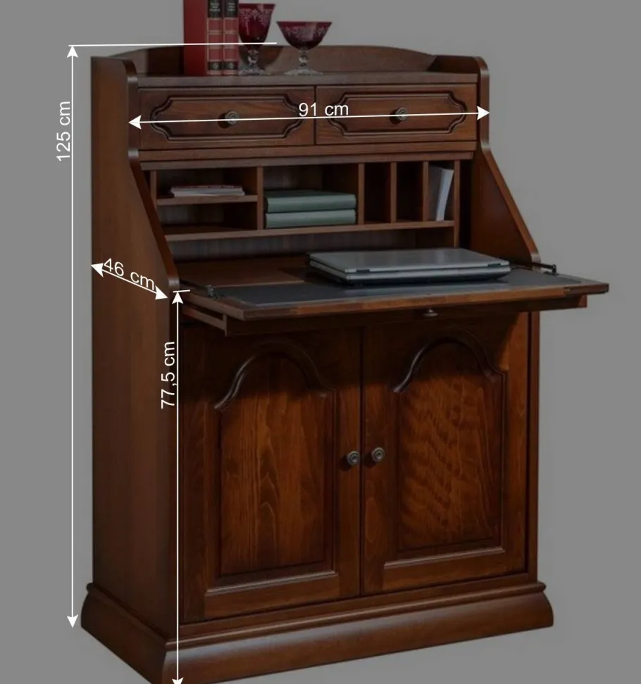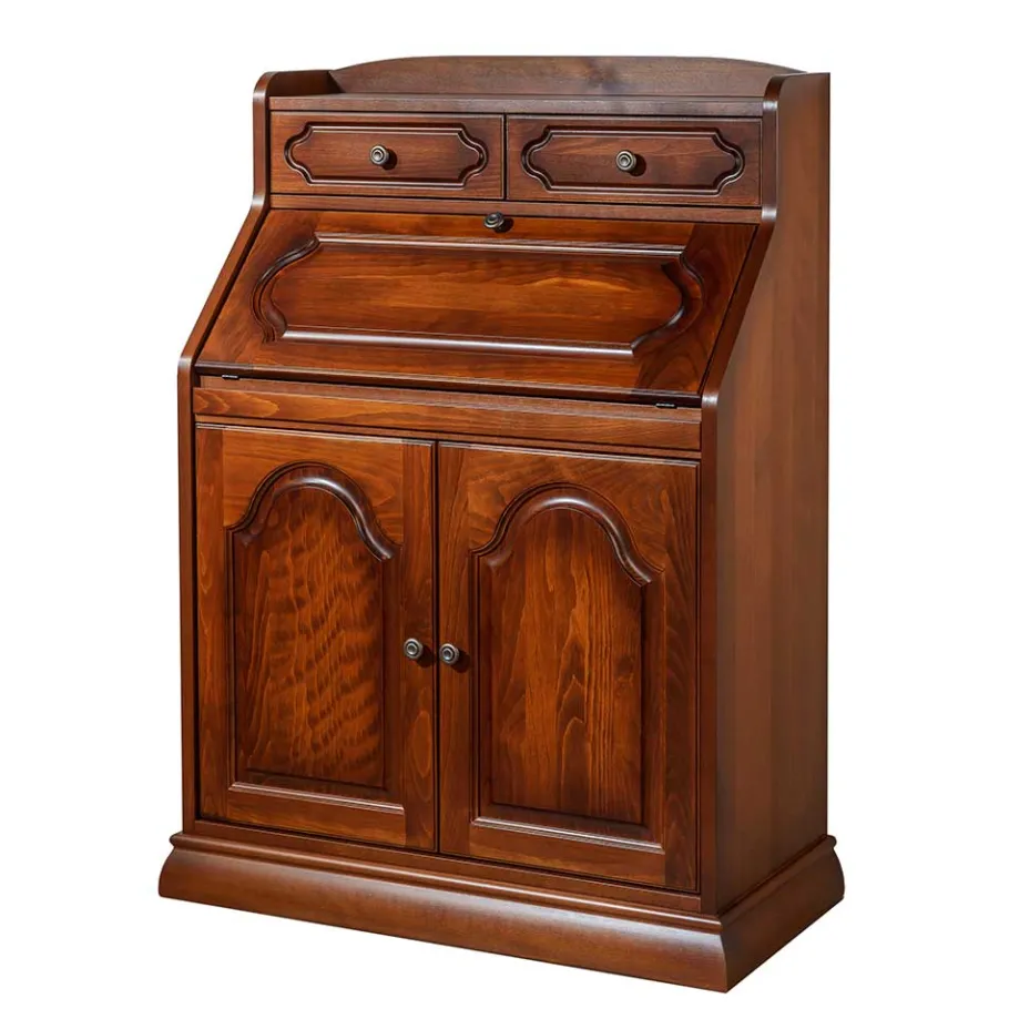Dieser Sekretär besticht durch seine erstklassige Qualität und Verarbeitung. Hergestellt aus massivem Buchenholz und Spanplatte, überzeugt er mit einer lackierten Massivholz-Oberfläche, die mit Antikfinish patiniert wurde. Auch der Holzwerkstoff ist echtholzfurniert und ebenso behandelt. Das Ergebnis ist ein wahrhaft edles Möbelstück, das in puncto Qualität und Optik höchsten Ansprüchen gerecht wird.