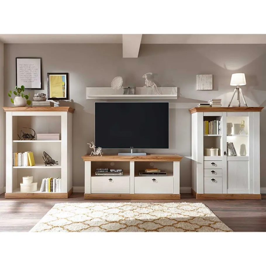 - Modische Wohnwand in Pinie Weiß und Wildeichefarben