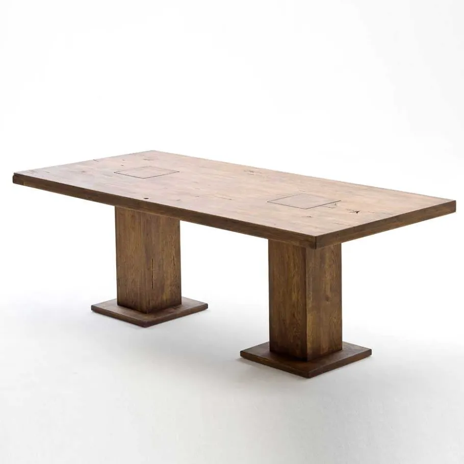 Mögen Sie rustikale Einrichtungsstile? Dann ist unser Esstisch „Apula“ genau das Richtige für Sie! Dieser Tisch wird in aufwendiger Handarbeit aus massivem Eichenholz gefertigt und verfügt über lackierte Oberflächen im warmen Farbton Bassano. Besondere Qualitätsmerkmale des Esstisches „Apula“ sind gewollte Risse, Druckstellen, Äste und Löcher, die dem Tisch einen besonderen Charme verleihen und ihn zu einem individuellen Einzelstück machen.