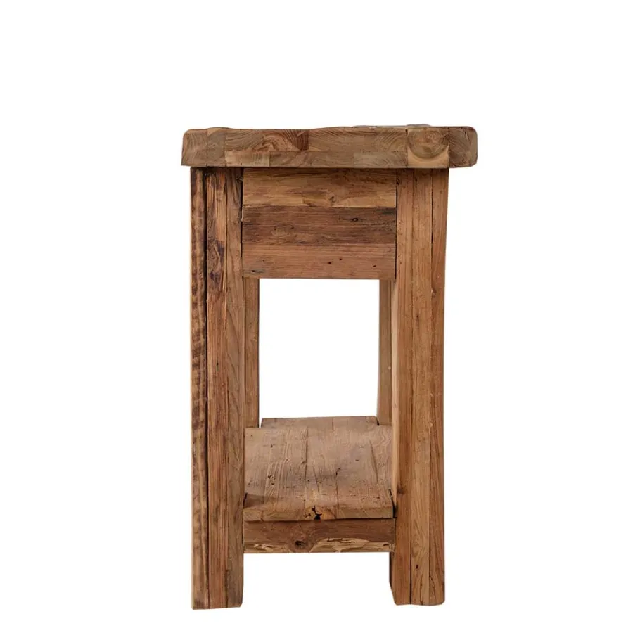 Entdecken Sie den einzigartigen Charme des Beistelltisches „Ragista“ und verleihen Sie Ihrem Wohnraum einen rustikalen Stil mit einer gehörigen Portion Natürlichkeit. Dieses handgefertigte Möbelstück aus recyceltem Teakholz ist von herausragender Qualität und Verarbeitung, das Ihnen jahrelange Freude bereiten wird.