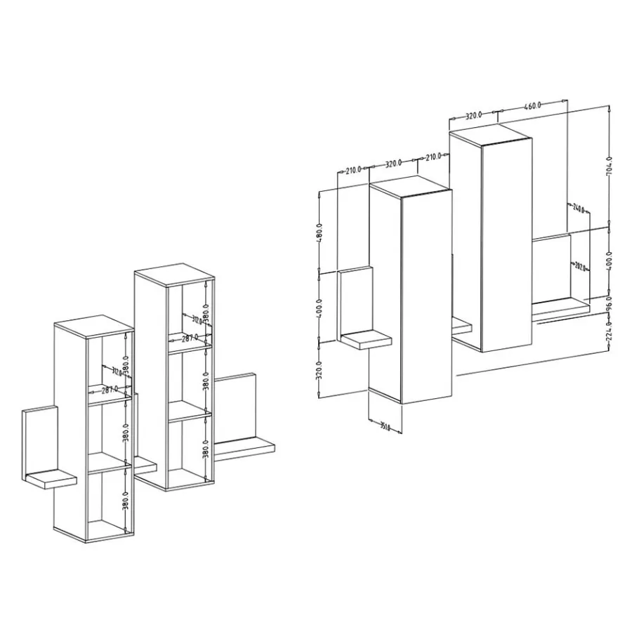 - Gesamtmaße variabel, die Möbel können beliebig aufgehängt werden