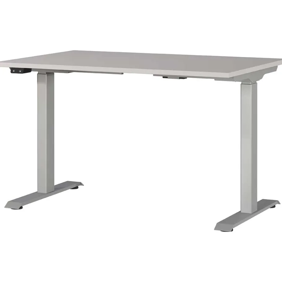 - Flexibler Schreibtisch in Hellgrau und Silberfarben