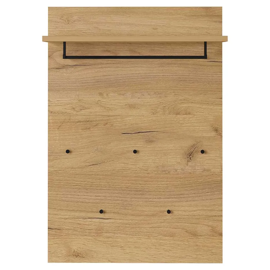 Gefertigt wird die Garderobe in deutscher Produktion – ein echtes Qualitätsversprechen. Das Möbelstück besteht aus robuster Spanplatte, die sich durch Formstabilität, Umweltfreundlichkeit und ein ausgezeichnetes Preis-Leistungs-Verhältnis auszeichnet. Die melaminbeschichtete Oberfläche punktet nicht nur durch ihre natürliche Holzstruktur in Wildeiche-Optik, sondern auch durch hohe Widerstandsfähigkeit gegen Kratzer, Feuchtigkeit und alltägliche Beanspruchung. Einfach mit einem feuchten Tuch reinigen – und schon erstrahlt die Oberfläche wie neu.