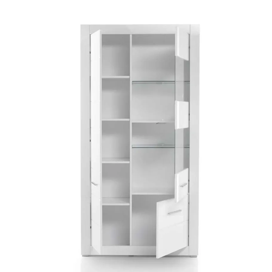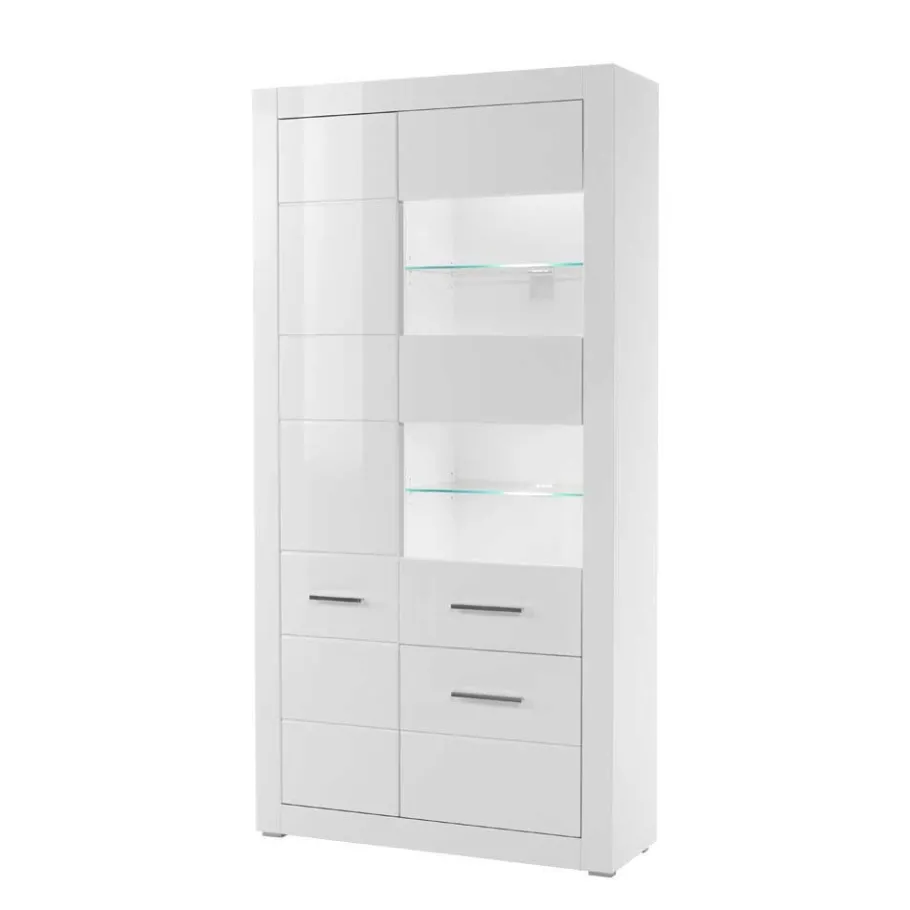 Gefertigt aus hochwertigen Materialien, verbindet „Yulis“ die Stabilität und Verlässlichkeit von MDF in der Front mit der leichten Vielseitigkeit von Spanplatte im Korpus. Glasflächen setzen gezielte Akzente und lassen Ihre Lieblingsstücke im besten Licht erscheinen. Die Fronten sind brillant hochglänzend in edlem Weiß foliert – das sorgt nicht nur für einen luxuriösen Look, sondern schützt die Oberfläche effektiv vor alltäglichen Beanspruchungen. Die matten Folierungen des Korpus wirken dezent und setzen den perfekten Kontrast zu den glänzenden Fronten. Ergänzt wird das Ganze durch elegante, glänzend verchromte Metallgriffe, die angenehm in der Hand liegen und das moderne Gesamtbild abrunden.