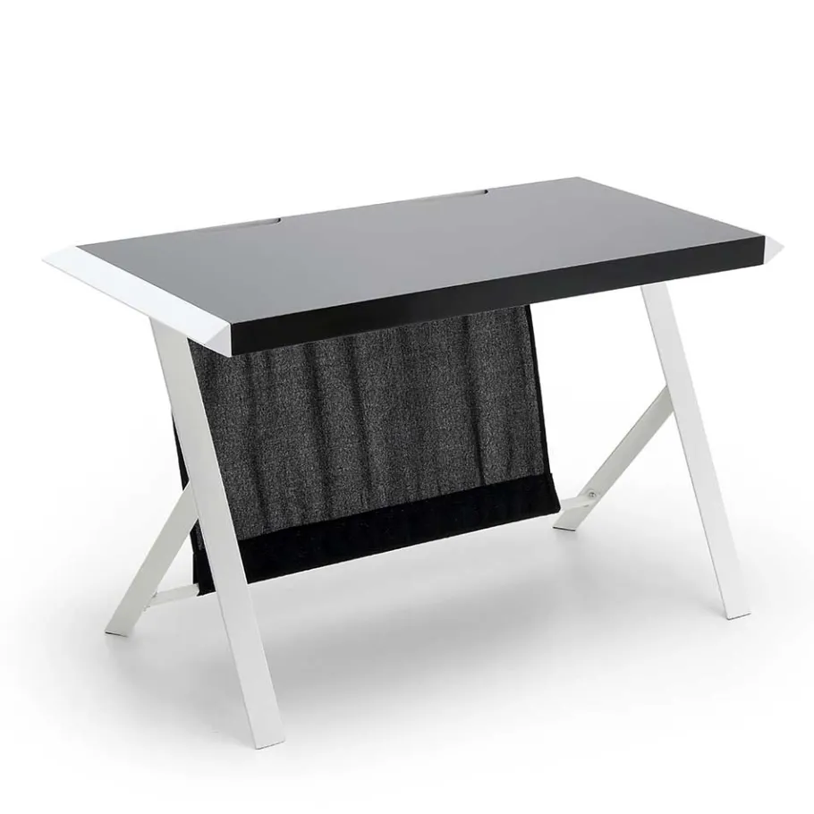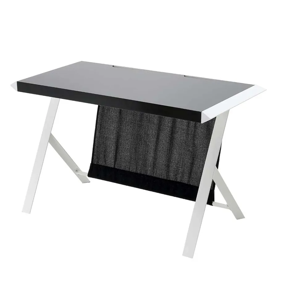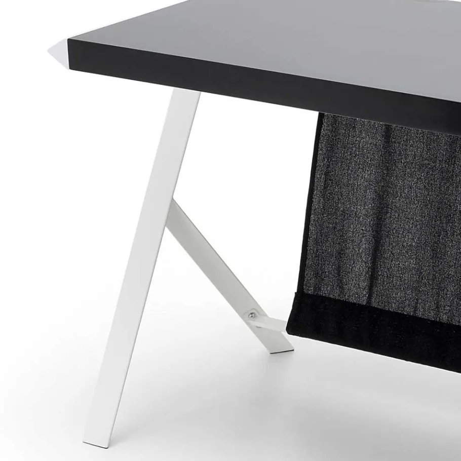 Der Schreibtisch Tulcea ist ein futuristisch gestalteter und moderner Tisch, der sich perfekt für Gamer oder den PC im Home Office eignet. Durch sein Design in Schwarz und Weiß lässt er sich problemlos mit allen anderen Farben kombinieren und fügt sich harmonisch in jede Einrichtung ein. Mit seinem angenehmen Format bietet er ausreichend Platz für Ihre Arbeitsutensilien und überzeugt durch seine hochwertige Qualität.