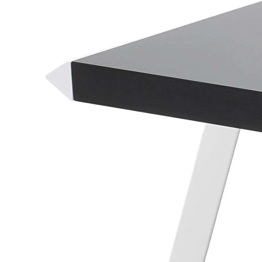 Bei der Fertigung des Schreibtischs Tulcea wurden sorgfältig ausgewählte Materialien verwendet. Die Tischplatte besteht aus MDF, ist in Mattschwarz lackiert und an den kurzen Seiten in Weiß abgesetzt. Das Design-Fußgestell aus Metall ist in Mattweiß lackiert und verleiht dem Tisch eine moderne Note.