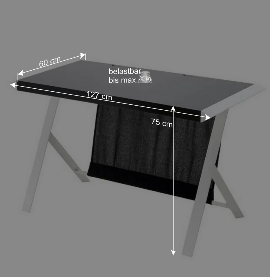 Die Maße des Schreibtischs Tulcea betragen 127 cm in der Breite, 60 cm in der Tiefe und 75 cm in der Höhe. Die Tischplatte ist belastbar bis zu einem Gewicht von ca. 30 kg, was ausreichend Platz für Ihren Computer, Monitor und weiteres Zubehör bietet.