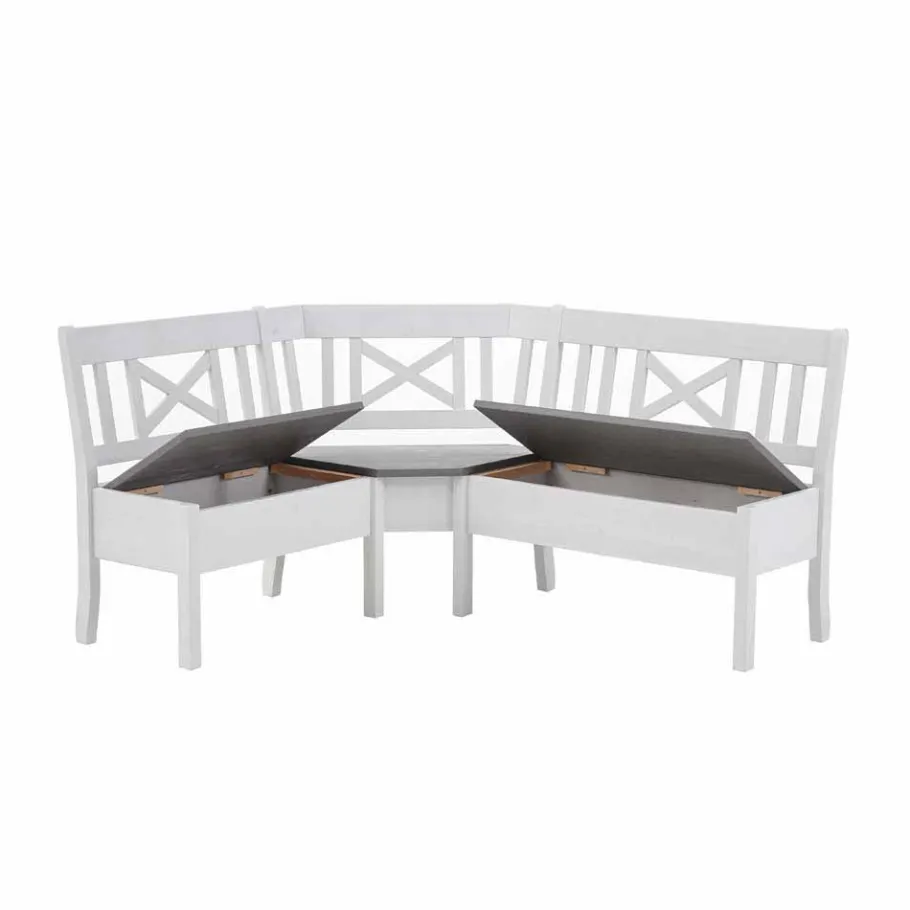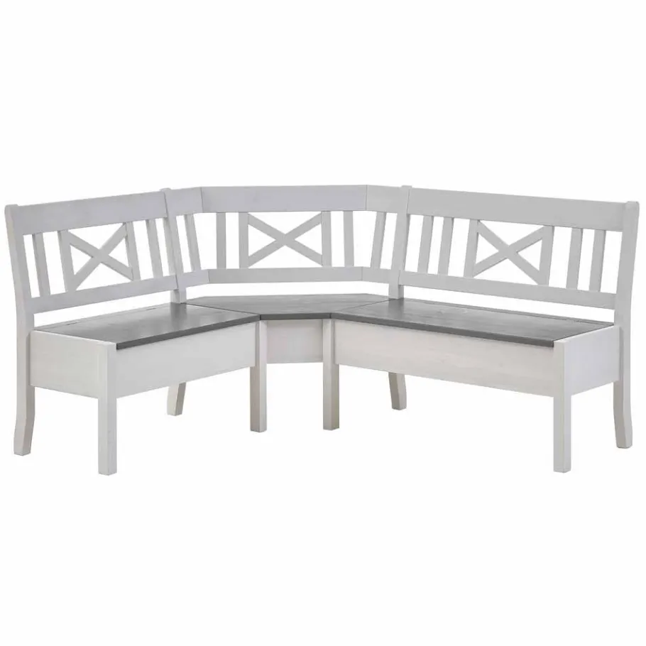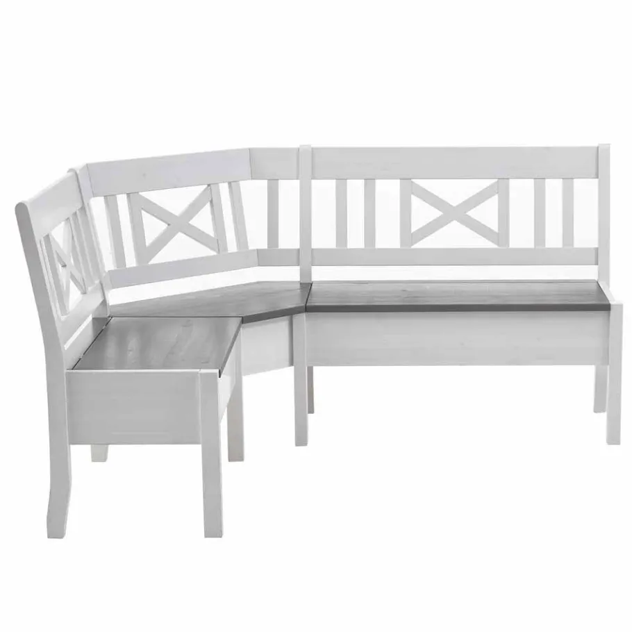 Warmes Holz, liebevolle Details und eine charmante Optik – die Eckbank „Yoan“ bringt den behaglichen Landhausstil in Ihr Zuhause. Dieser Stil steht für Natürlichkeit, Geborgenheit und eine Atmosphäre, die zum Verweilen einlädt. Die Kombination aus weiß lackierten Flächen und einer grau gebeizten Sitzfläche mit durchscheinender Maserung verleiht dieser Sitzbank einen authentischen und hochwertigen Look. Perfekt für alle, die einen Hauch von Nostalgie mit modernem Wohnkomfort verbinden möchten.